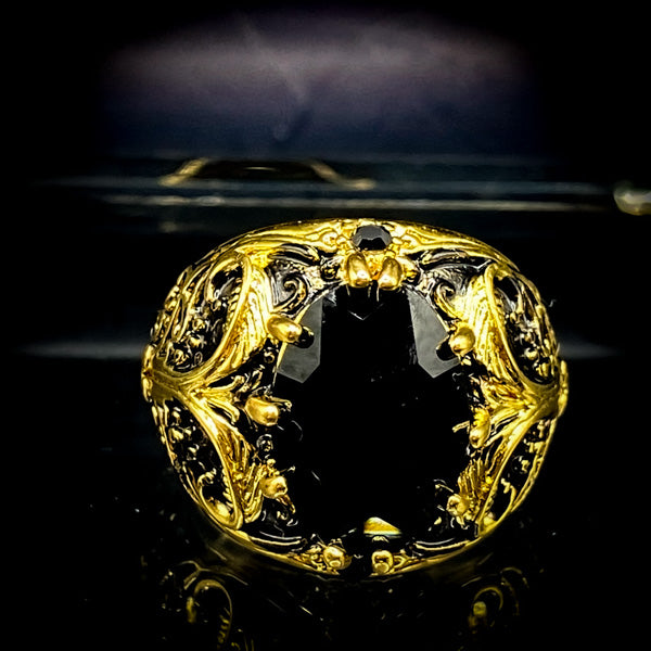 お金の象徴カラーゴールドに黒魔術の象徴カラーブラックの魔石に高等黒魔術を施したアレイスターの涙で人気を誇るリングに厳選魔術師が昼夜をかけて術を施しお手元にお届けします。