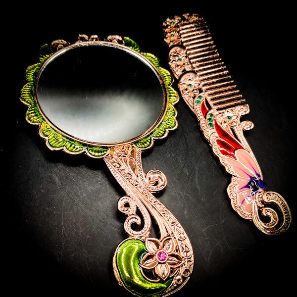 貴方を徹底的に守りながら魂浄化をも行う魔鏡と櫛に変身や飛躍など強力な力を持つ蝶をあしらった「魅惑の魔鏡」に最高級の魔力をそそぎお手元にお届けします。