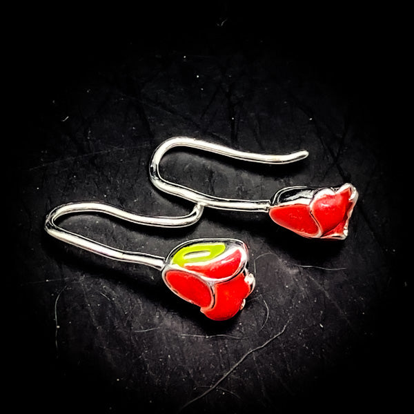 今回は可チューリップのレッドアイズ(赤魔石)が耳元を飾る可愛らしいデザインとなっております。